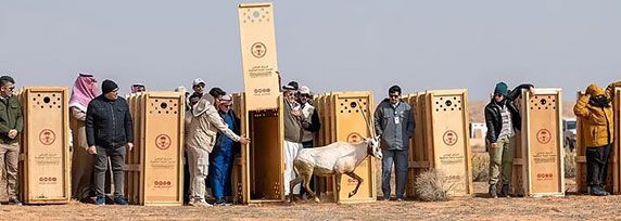 أطلق المركز الوطني لتنمية الحياة الفطرية، بالتعاون مع هيئة تطوير محمية الإمام تركي بن عبدالله الملكية، 124 كائنًا فطريًا مهددًا بالانقراض في المحمية، وذلك ضمن برامج إكثار وإعادة توطين الكائنات الفطرية المهددة بالانقراض في موائلها الطبيعية. وشمل الإطلاق 100 من ظباء الريم، و10 من ظباء الإدمي، و14 من المها العربي، في إطار جهود المركز لإعادة توطين الأنواع المحلية في بيئاتها الطبيعية، واستعادة النظم البيئية، وإثراء التنوع الأحيائي في المحميات الطبيعية، بما يعزز التوازن البيئي ويرسّخ مفهوم الاستدامة البيئية. وأوضح الرئيس التنفيذي للمركز الوطني لتنمية الحياة الفطرية، الدكتور محمد علي قربان، أن هذا الإطلاق يأتي ضمن جهود المركز المستمرة لإعادة توطين الأنواع المحلية المهددة بالانقراض في موائلها الطبيعية، وتعزيز استقرار النظم البيئية داخل المحميات الطبيعية. وبيّن أن هذا الإطلاق يأتي امتدادًا لسلسلة من الإطلاقات، التي نفذها المركز في عددٍ من المحميات الطبيعية، ضمن برنامجه الخاص بإكثار وإعادة توطين الكائنات المهددة بالانقراض بما يسهم في تحقيق أحد أبرز مستهدفات مبادرة السعودية الخضراء ورؤية المملكة 2030، الهادفة إلى بناء بيئة جاذبة تسهم في تحسين جودة الحياة وتعزيز الاستدامة. وأضاف الدكتور قربان: يعكس برنامج الإطلاق عمق التعاون البناء والتكامل مع الشركاء في قطاع الحياة الفطرية، والحرص المشترك على تعزيز خطط الإدارة الشاملة والفعالة داخل المناطق المحمية.