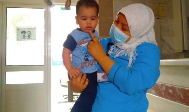 وكانت الممرضات تقوم بمداعبة أصغر طفل مصاب بفيروس كورونا ومحاولة رسم البهجة علي وجهه واعطائه بعض الالعاب داخل غرفة العزل بمستشفى ناصر العام بشبرا الخيمة .